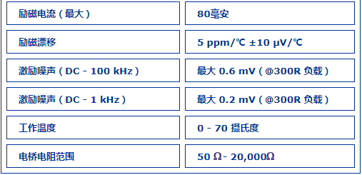 GAGE-3001 提供可變激勵,能夠在 1V 至 20V 的電壓范圍內(nèi)產(chǎn)生高達 80 mA 的電流。激勵電壓關(guān)于地電平對稱,因此共模電壓約為。0V。例如:12V 的激勵電壓相對于地電壓為 ±6V。