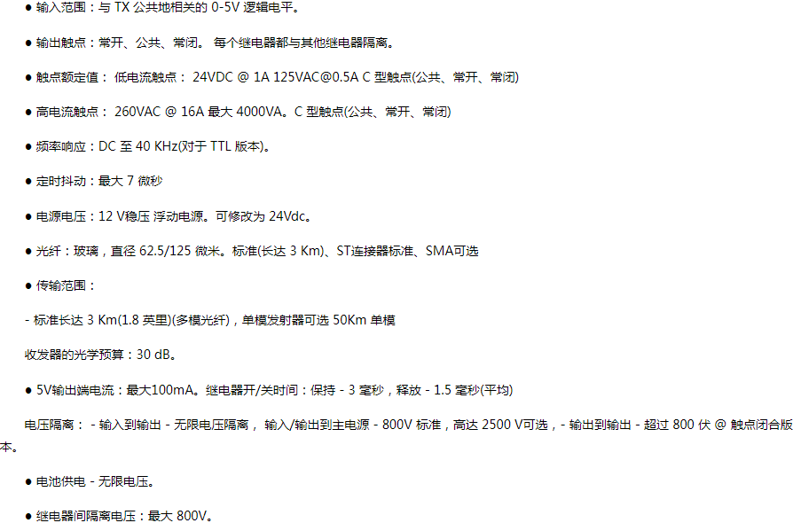 觸點(diǎn)閉合版本:發(fā)射器對(duì) 8 個(gè)觸點(diǎn)的狀態(tài)(“ON”或“OFF”狀態(tài))進(jìn)行采樣,并通過(guò)光纖鏈路將它們傳輸?shù)浇邮掌鳌?/p>