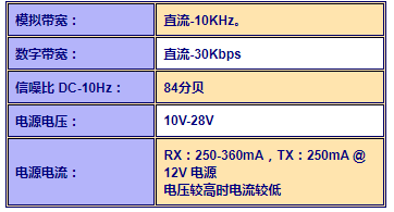 模擬輸入的帶寬為DC-10KHz。觸點(diǎn)每秒最多可切換 50 次,TTL 線路每秒最多可切換 30,000 次。使用標(biāo)準(zhǔn)多模接口時(shí),Tx 和 Rx 模塊之間的距離可能在 0 到 2 英里之間(使用 1550nm 單模光纖接口和 SM 光纖可選 30 英里)。